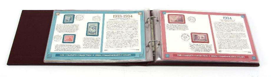 A binder put out by the Postal Commemorative society, "The Complete Set of 1930"s Commemorative Stamps", 35 pages each with a selection of commemorative unused stamps from the 1930's.