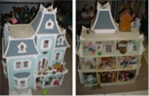 COMPLETE DOLL HOUSE FULLY FURNISHED INCLUDING MINIATURES, ACCESSORIES, AND DECORATED ROOMS.