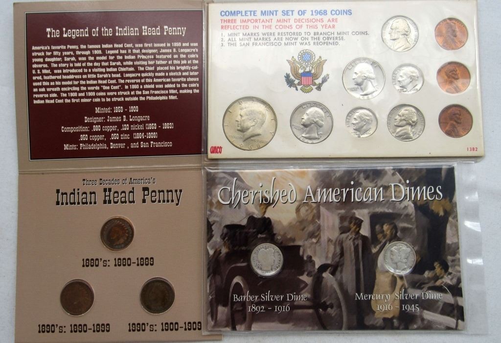THREE DECADES OF AMERICA INDIAN HEAD PENNY, CHERISHED AMERICAN DIMES