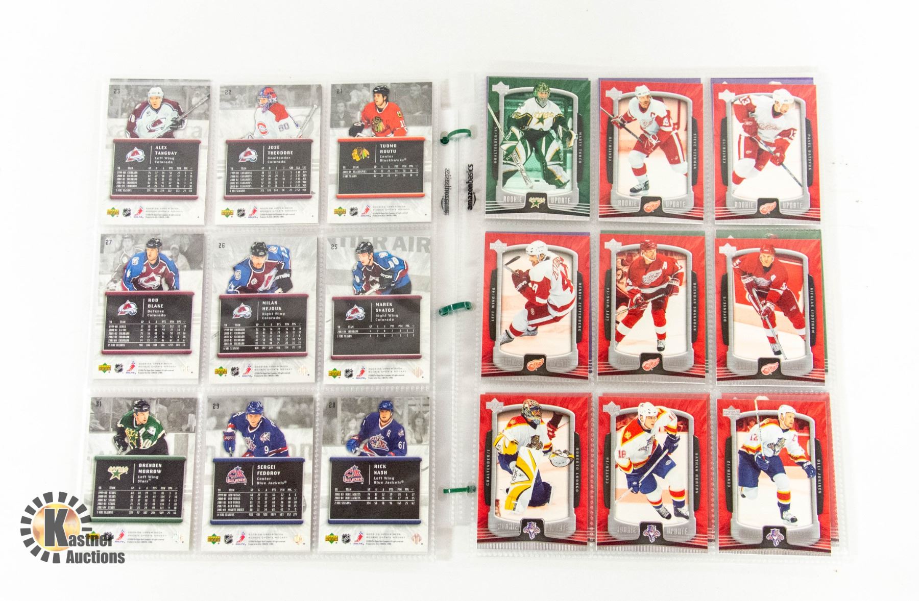 ALL 100 CARDS INCLUDES WELL KNOWN NAMES SUCH AS ALES HEMSKY, JOS SAKIC, MIKE MODANO, LUC ROBITAILLE, MARIN BRODEUR, JAROMIR JAGR, MATS SUNDIN, ED BELFOUR AND MANY MORE.