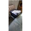 COMPLETE TEMPERED GLASS PATIO TABLE SET: C/W TABLE, 6 CHAIRS; UMBRELLA & EXTENSION
