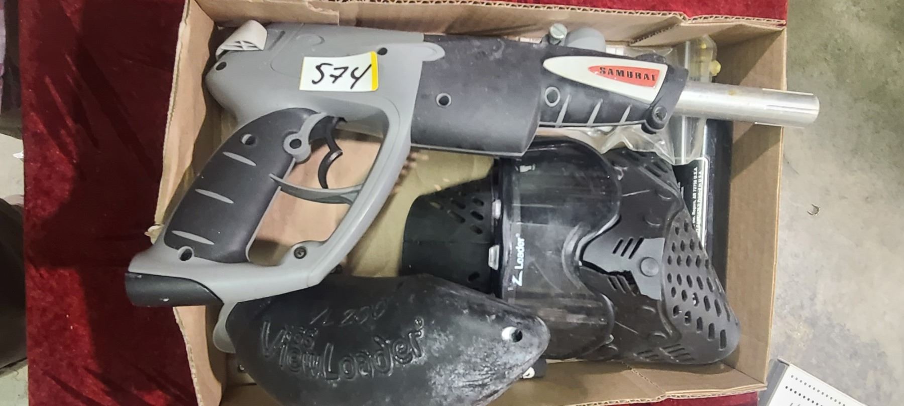 COMPLETE USED PAINT BALL KIT INCL GUN, MASK, HOPPER AND O2 TANK