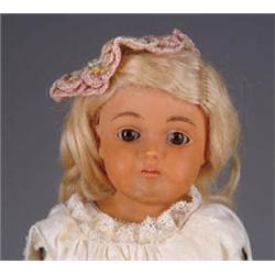 COMPOSITION DOLL “JDK2012/0”. Brown sleep eyes, open mouth, leather and composition body, blonde wig. SIZE: 13”. CONDITION: Generally good. 1-2075