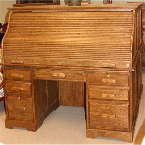 Solid Oak Computer Roll Top Desk. Tops are wood core oak plywood no particle board. Import desk made for American Lifestyle company,specifications. Close attention paid to detail during construction, tight joints and drawers fit and operate properly. drawer guides are ball bearing. surge protector included. Lots of acessory cubby holes and drawers. Holds 21 in monitor.medium oak color with lacquer finish. Holds letter or legal files. Ships in three boxes.very little assembly required,install back knee hole panel with 4 bolts(supplied) into threaded holes (wrench supplied). Install keboard drawer/tray, with four bolts in threaded holes. Two people place assembled top onto pedestal and align 4 dowells. Attach with supplied screws if desired. Takes two people about half an hour.