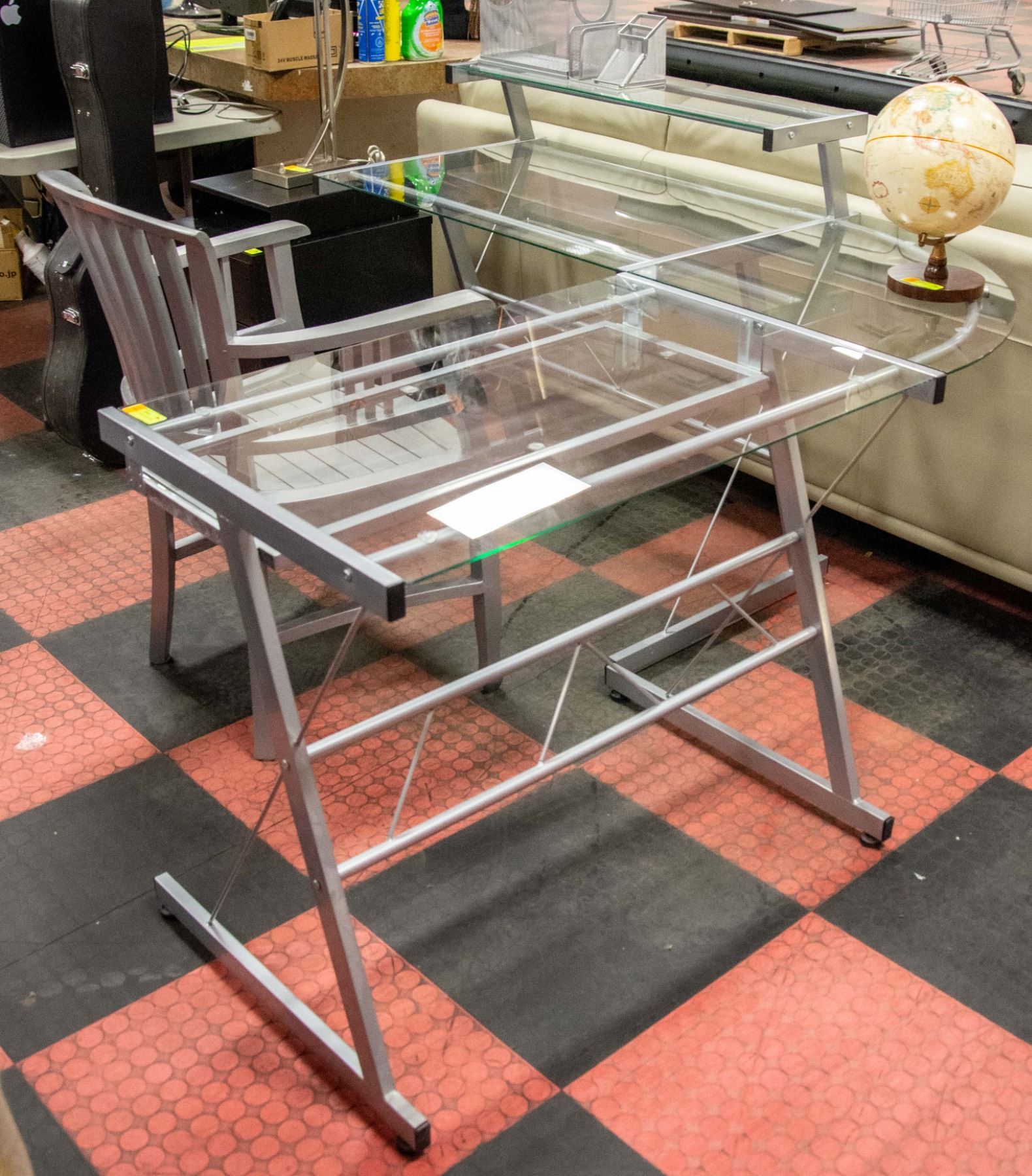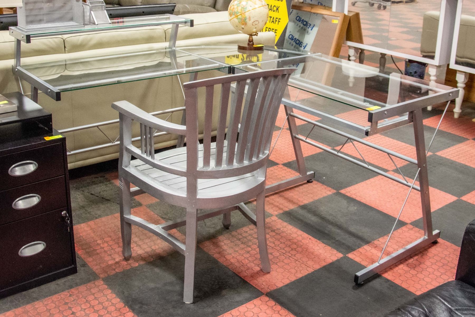COMPUTER STATION AND SILVER PAINTED TEAK CHAIR