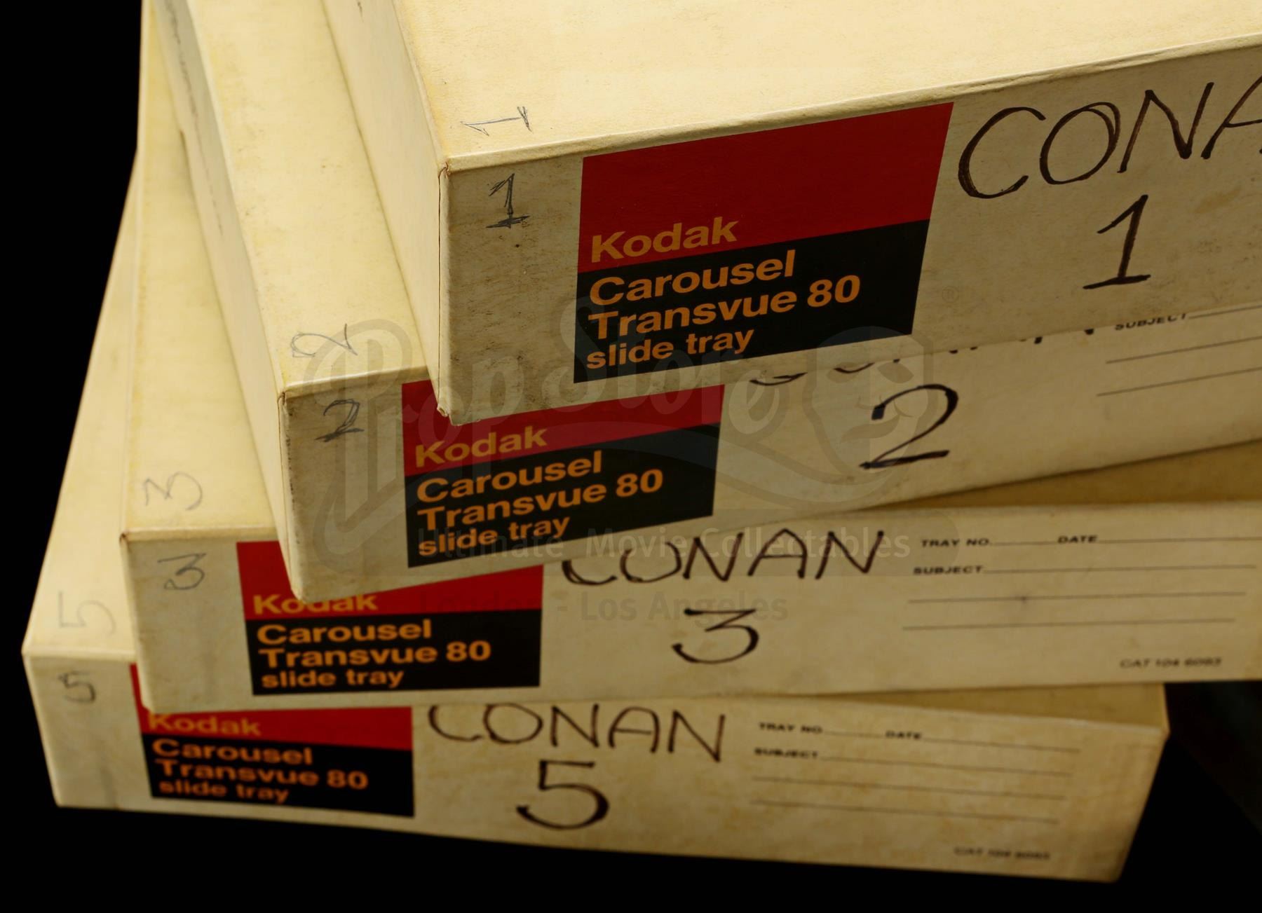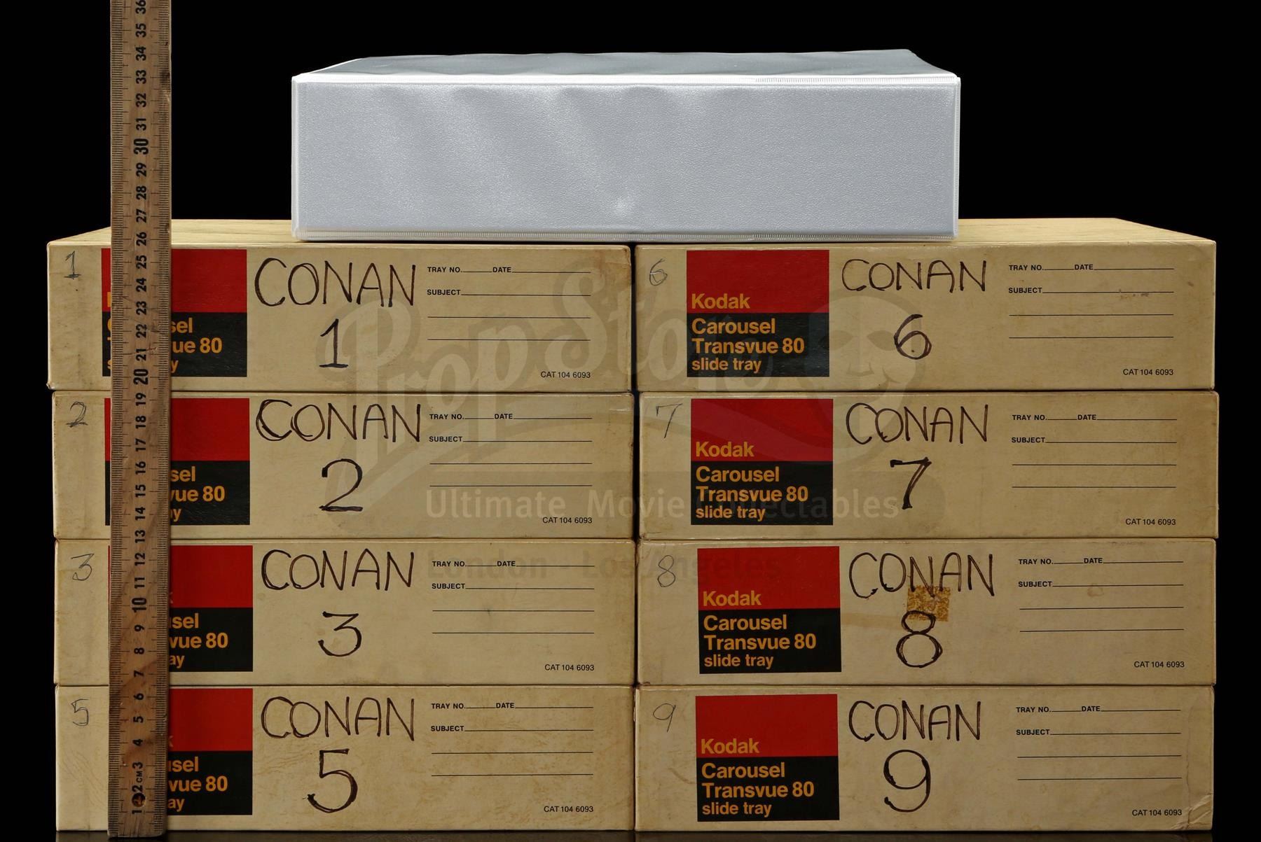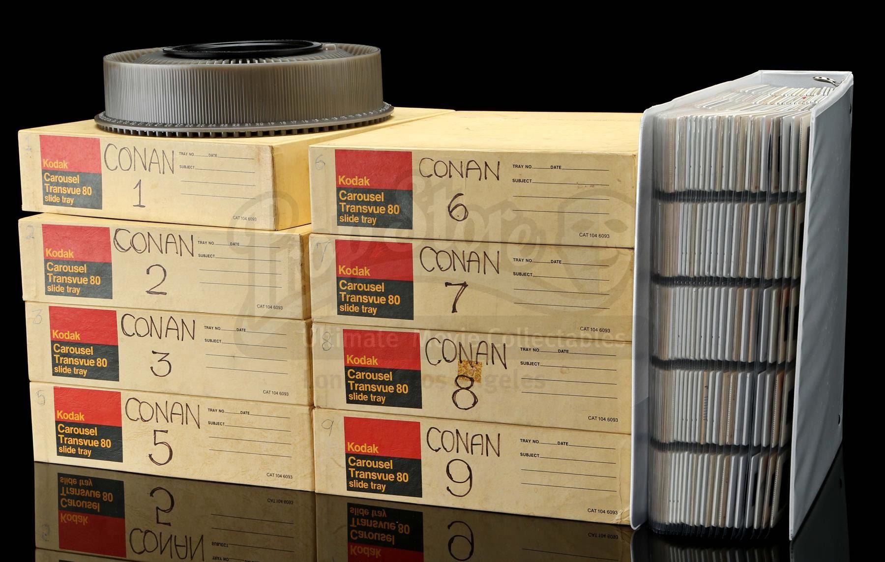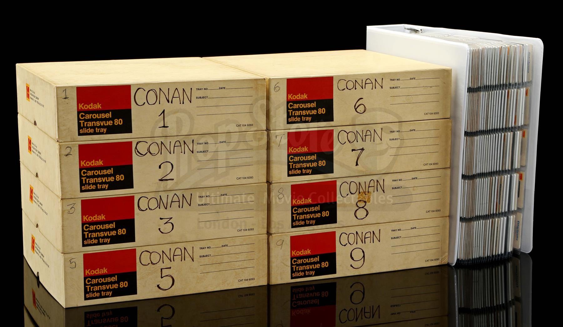 Production designer Ron Cobb's personal photography archive of 642 35mm slides from the production of John Milius' fantasy adventure Conan the Barbarian, which chronicled Conan's (Arnold Schwarzenegger) rise from slave to fearsome warrior on his quest to avenge the murder of his family.