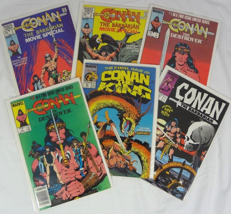 INCLUDES MOVIE SPECIAL #1 & #2, CONAN THE DESTROYER 1 & 2, CONAN THE KING 55 and CONAN THE BARBARIAN 223, NICE CONDITION, EST $25-$35