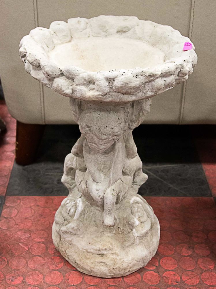 CONCRETE 17" TALL CHERUB BIRDBATH