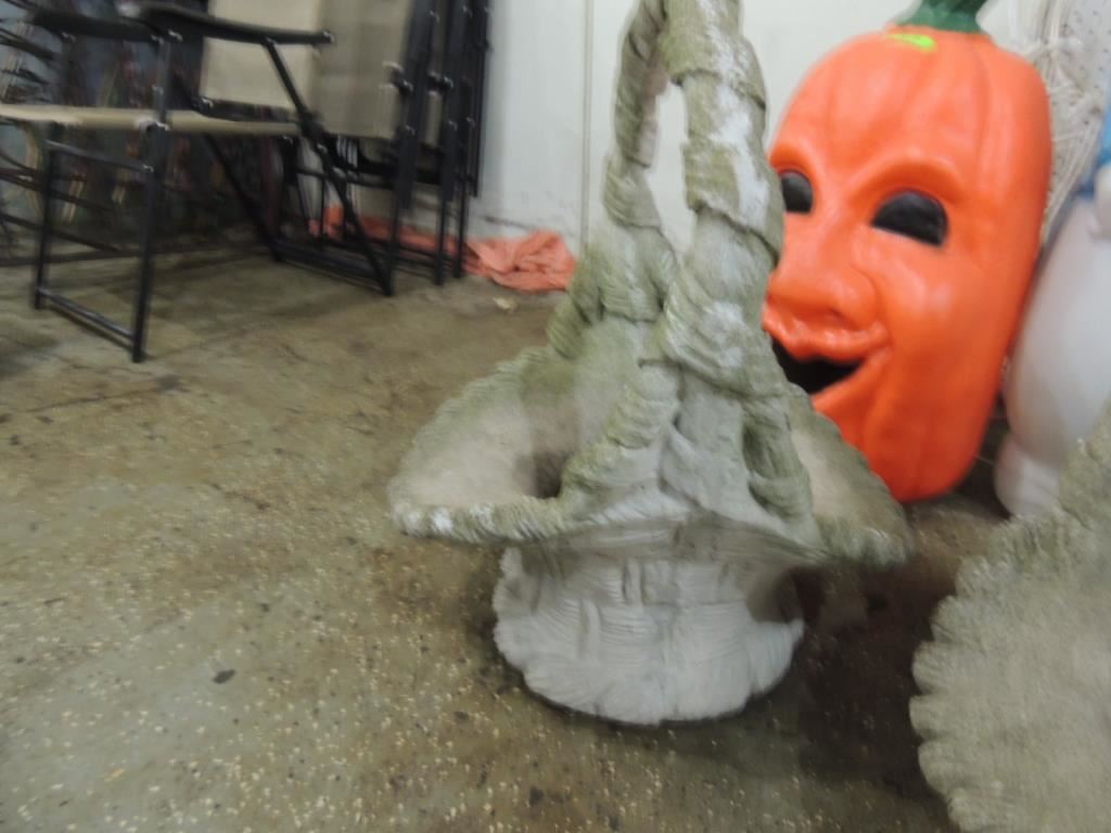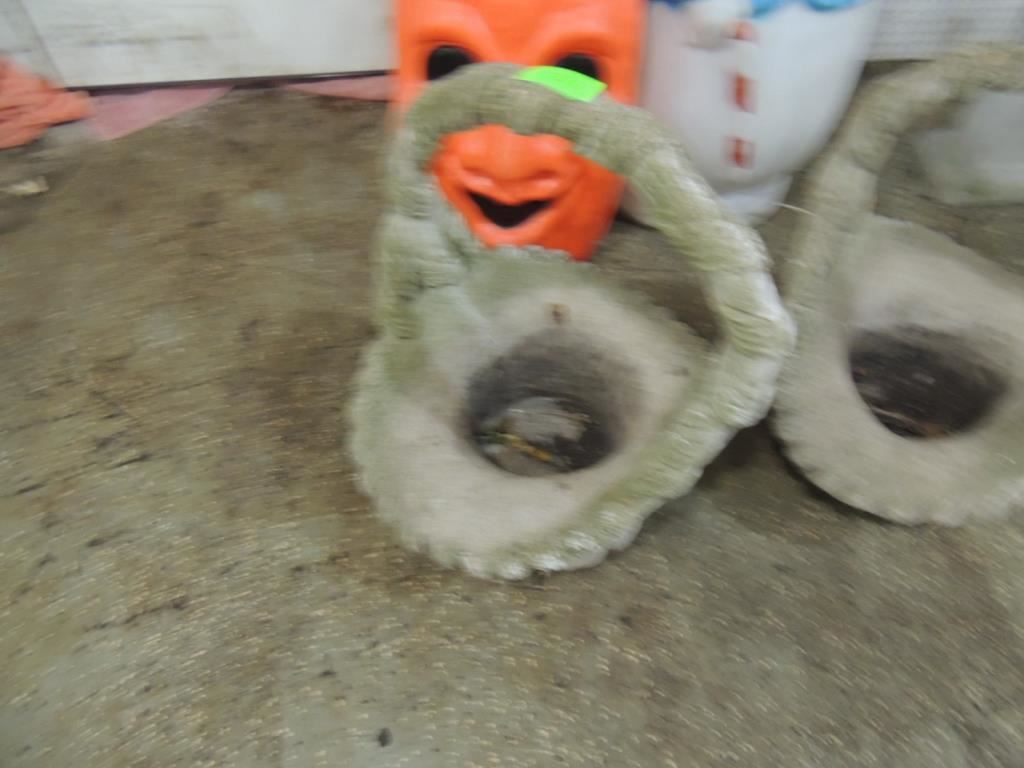 DECORATIVE BASKET WITH HANDLE CONCRETE OUTDOOR PATIO PLANTER, DECORATIVE PLANTER, AS SHOWN SEE PHOTO FOR MORE DETAILS.