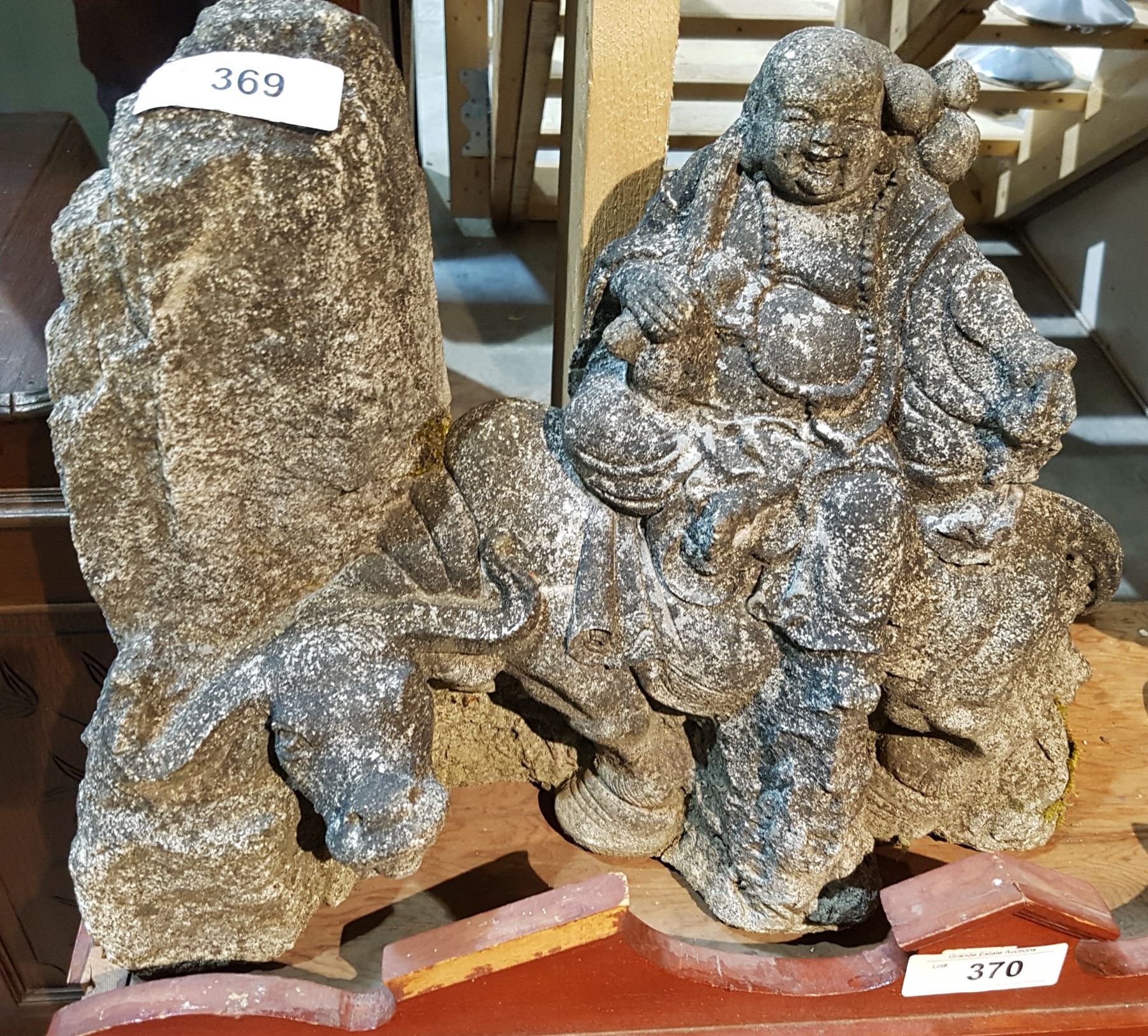 CONCRETE BUDDHA ON BULL GARDEN STATUE