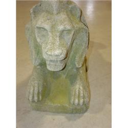 CONCRETE FIGURAL LION YARD ORNAMENT. Wear and roughness to ears. 16.5" H, 26.5" L