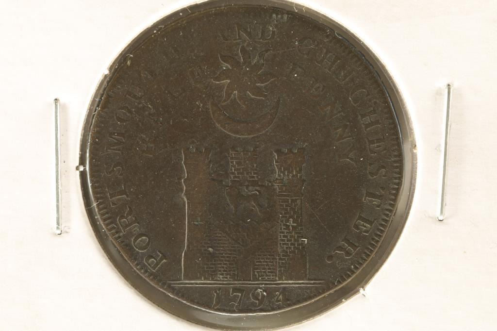 PROVINCIAL TOKENS PRIVATELY MINTED TOKEN COINAGE STRUCK AND USED DURING THE LATTER PART OF THE 19TH CENTURY IN ENGLAND. SIMILAR TO OUR CIVIL WAR AND HARD TIMES TOKENS. "PORTSMOUTH HALF PENNY"