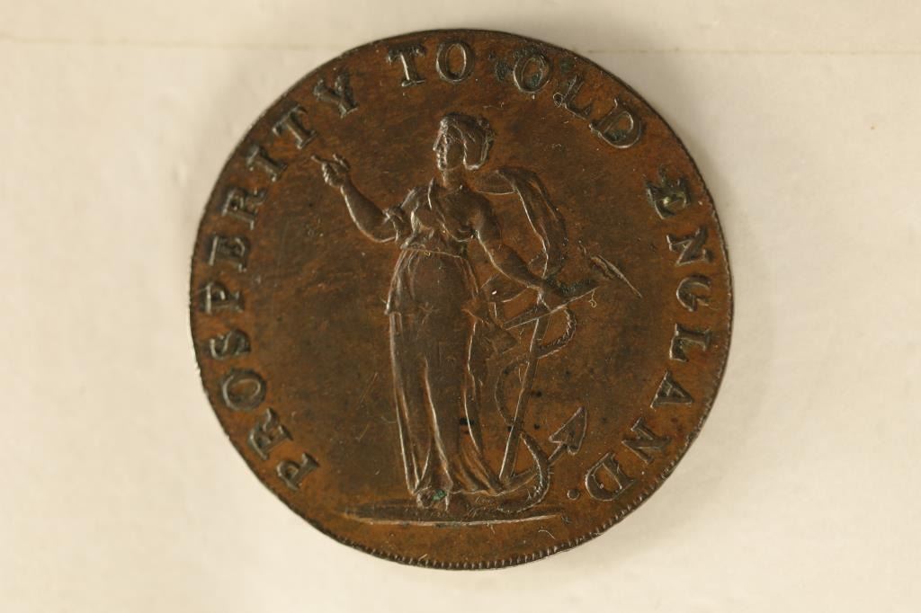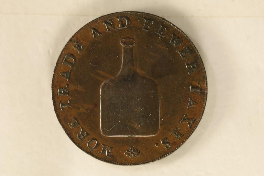 PROVINCIAL TOKENS PRIVATELY MINTED TOKEN COINAGE STRUCK AND USED DURING THE LATTER PART OF THE 19TH CENTURY IN ENGLAND. SIMILAR TO OUR CIVIL WAR AND HARD TIMES TOKENS. MORE TRADE AND FEWER TAXES. PROSPERITY TO OLD