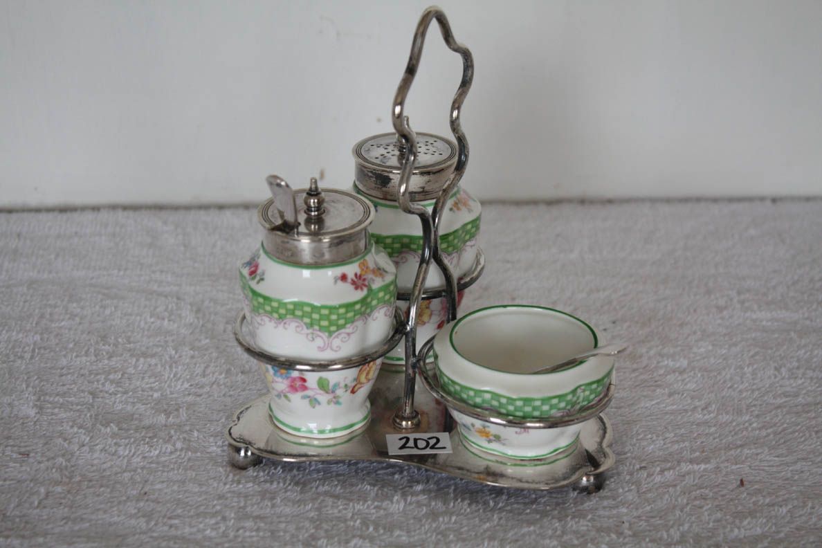 CONDIMENT SET GREEN & WHITE