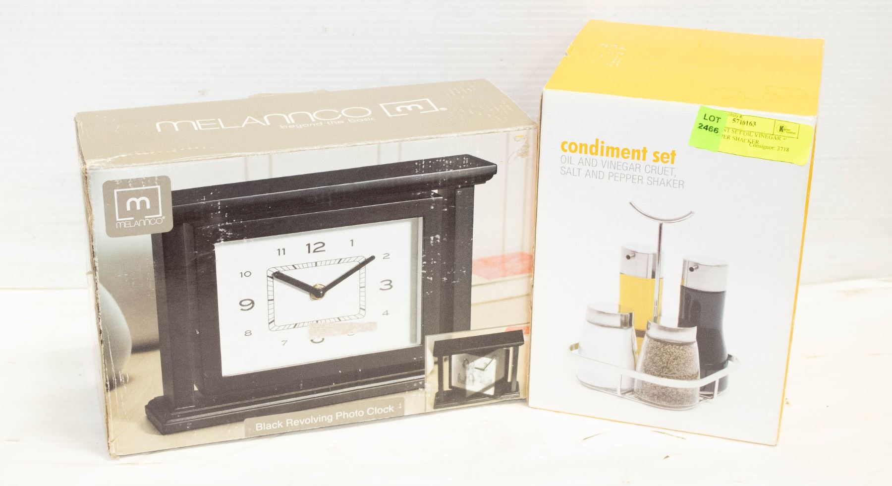 SET NEW + NEW BLACK REVOLVING PHOTO CLOCK **ALL ITEMS MUST BE REMOVED BY 5PM SATURDAY, OCTOBER 14TH 2023. ALL REMAINING ITEMS WILL BE SUBJECT TO A $6.00 PER DAY STORAGE CHARGE. ANY ITEMS REMAINING AFTER MONDAY, OCTOBER 30TH, 2023 WILL BE CONSIDERED FORFEITED. NO REFUNDS WILL BE ISSUED FOR FORFEITED ITEMS. TO SCHEDULE A PICK UP APPOINTMENT CLICK HERE