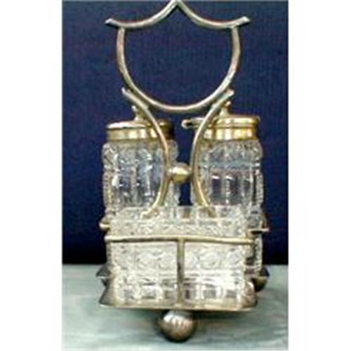 A great antique four-piece crystal and silver condiment set. Cut crystal open