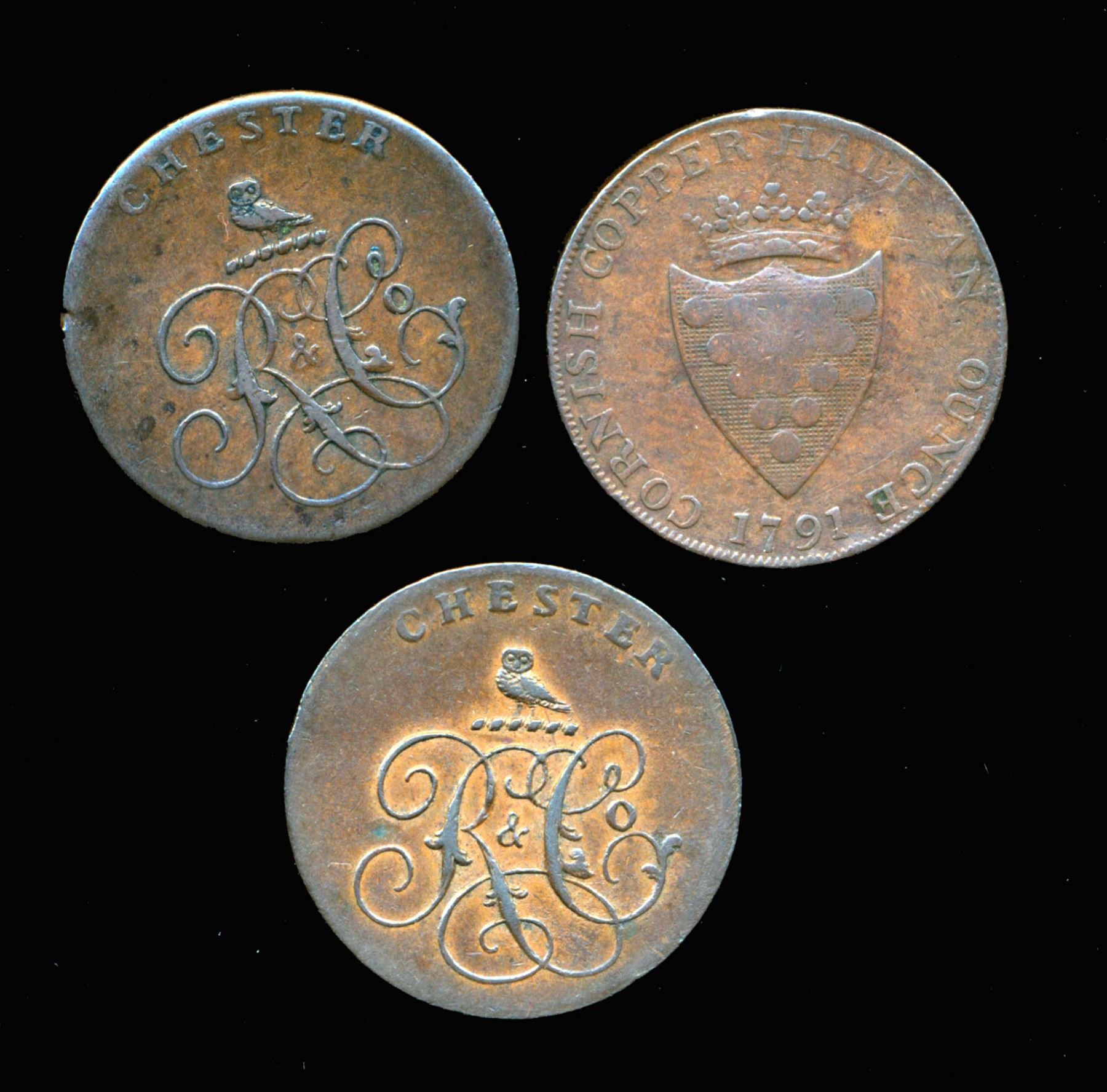 CONDOR TOKENS Cheshire/Cornwall 1791 A Lot of 3 Pieces All Very Fine