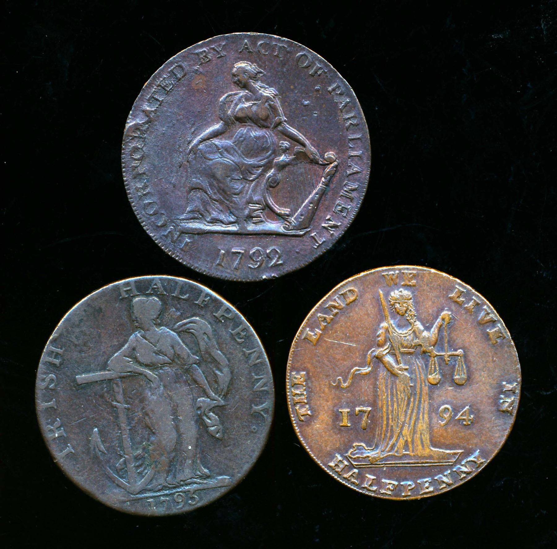 CONDOR TOKENS Dublin 1792-1795 A Lot of 3 Dublin Pieces Fine-Extra Fine