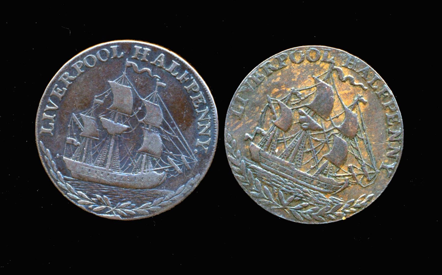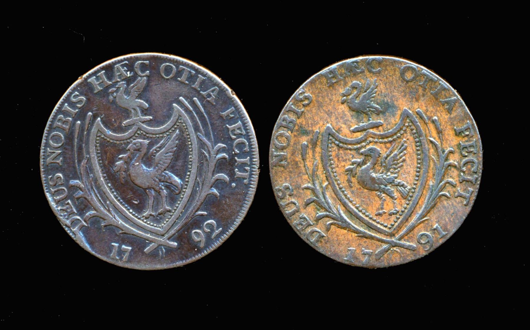 1 x 1791 Liverpool D&H# 66 9.9 gm. and 1 x 1792 Liverpool D&H# 99 Rev: Cud at 8 O'Clock VF