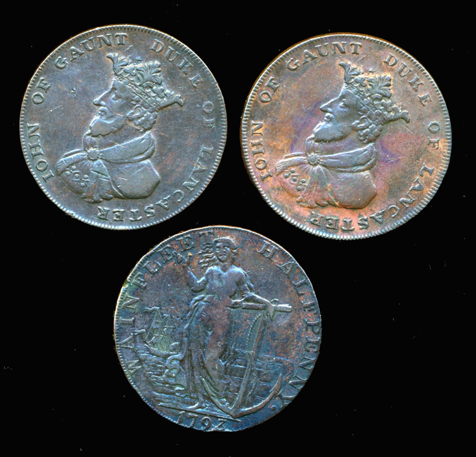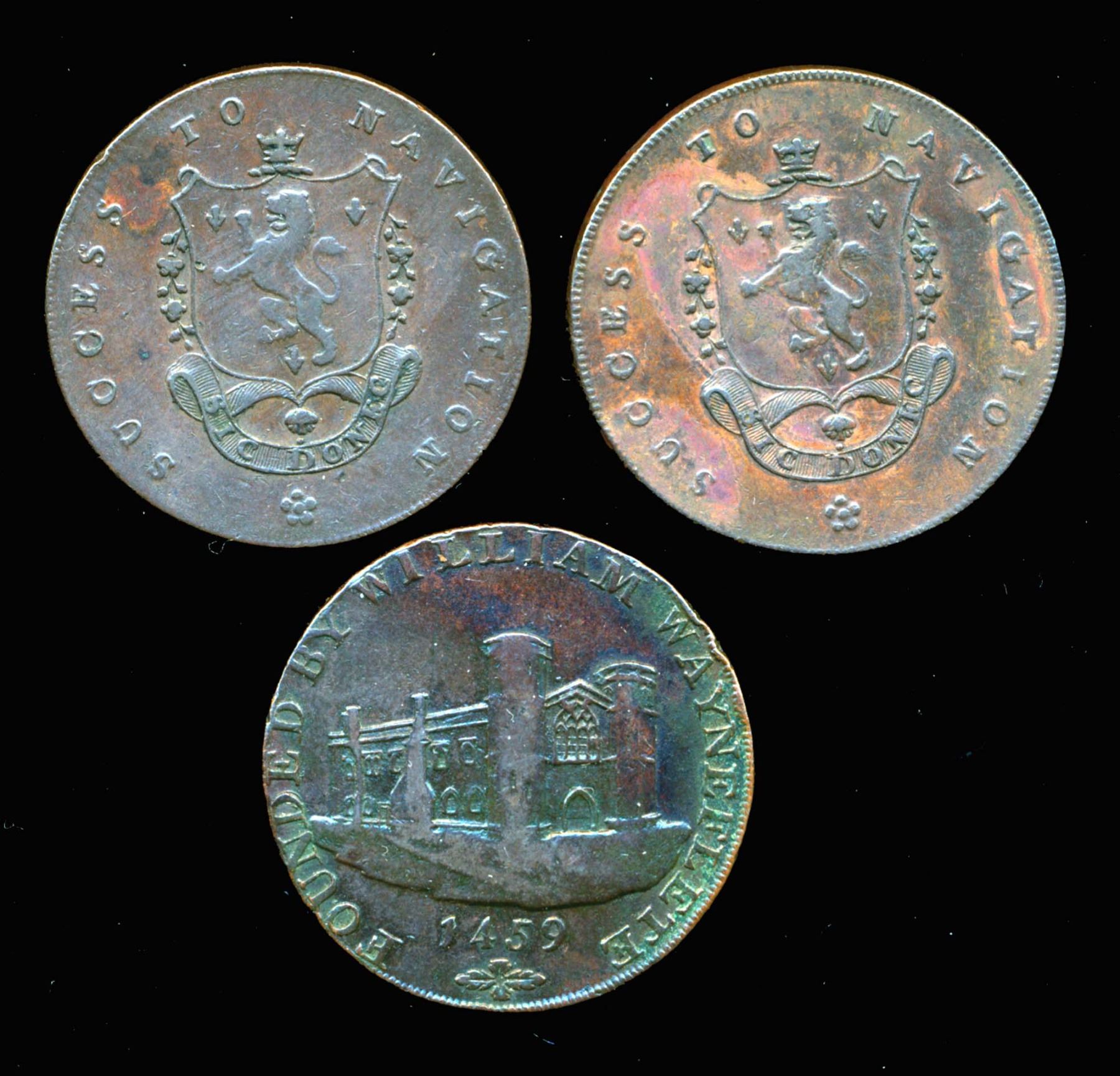 2 X Sleaford D&H# 3b (9.7 gm VF & 9.8 gm. EF) considered scarce! and 1 x 1793 Wainfleet D&H# 8 11.7 gm. F.