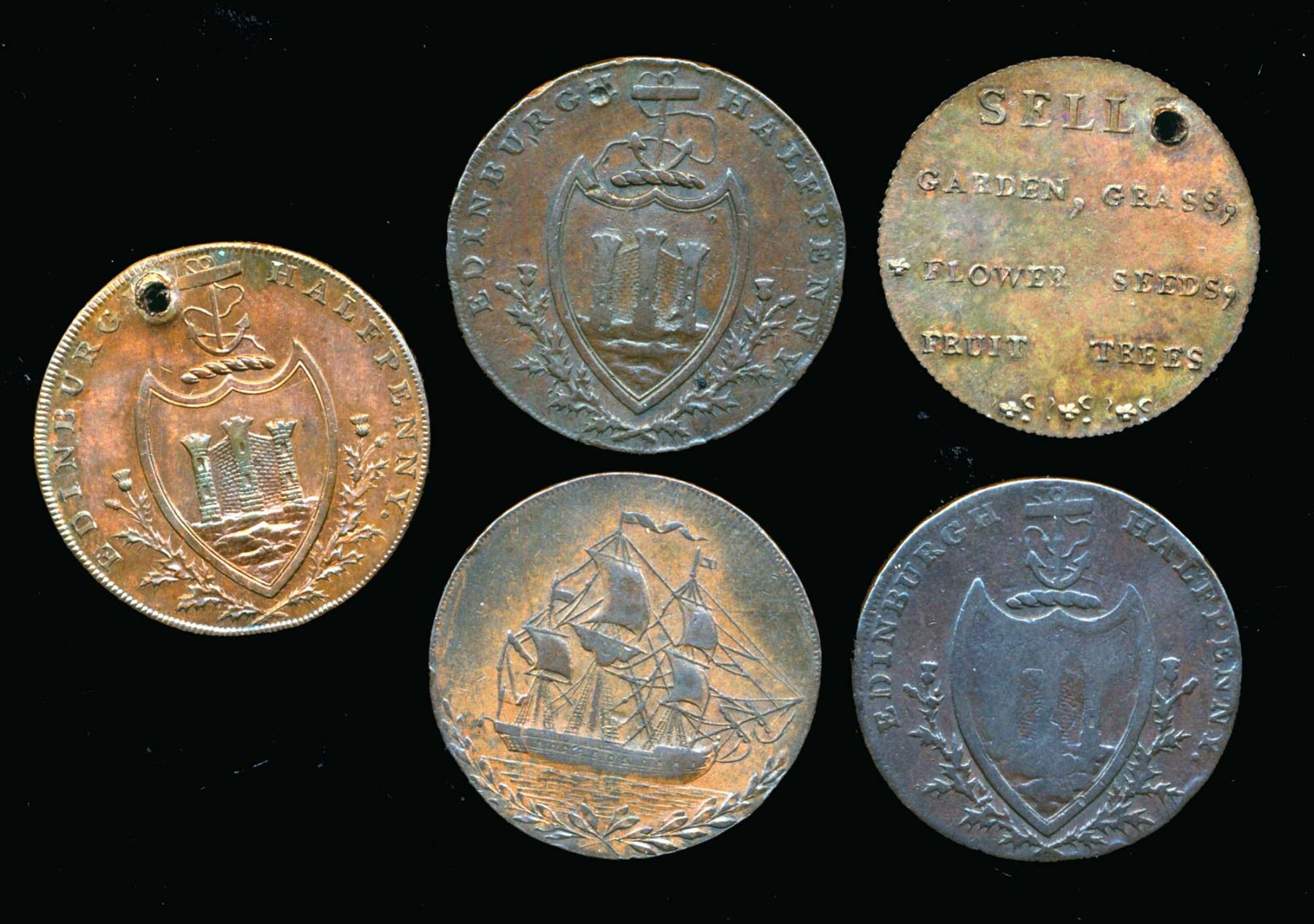 CONDOR TOKENS Lothian 1790-96 A Lot of 5 Edinburgh Halfpenny F-VF