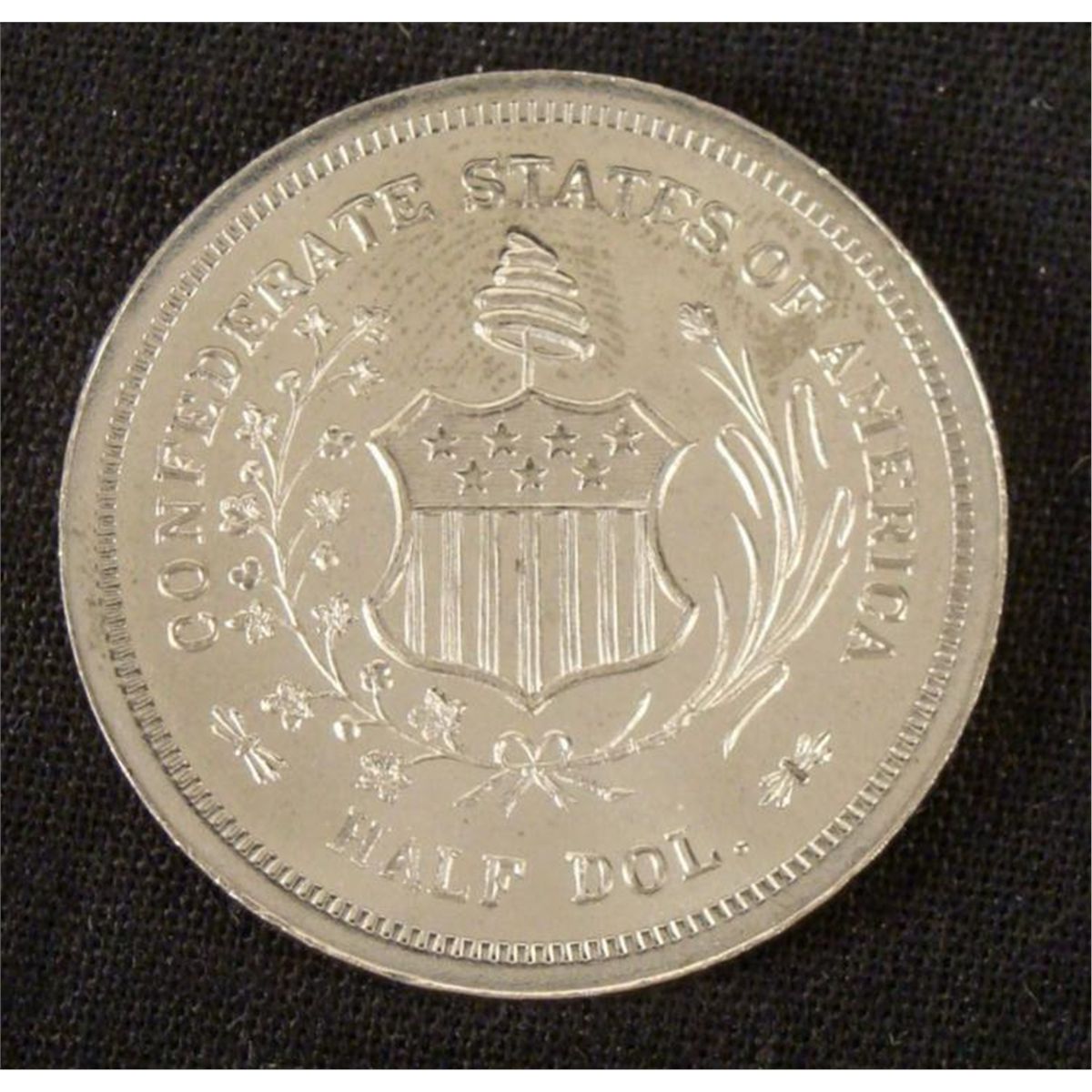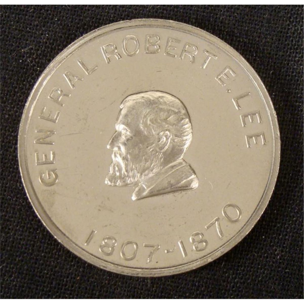 CONFEDERATE 1/2 DOLLAR REPLICA OF 1861 REVERE-REVERSE GEN. ROBERT E. LEE. * FINE CONDITION--1 1/4" IN DIAMETER *
