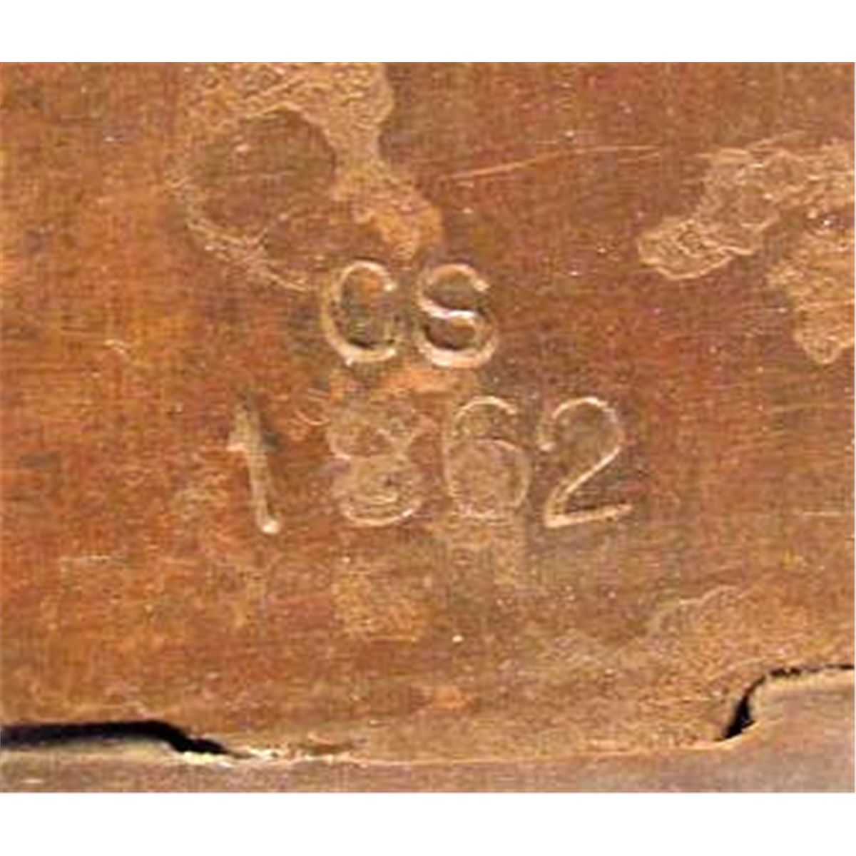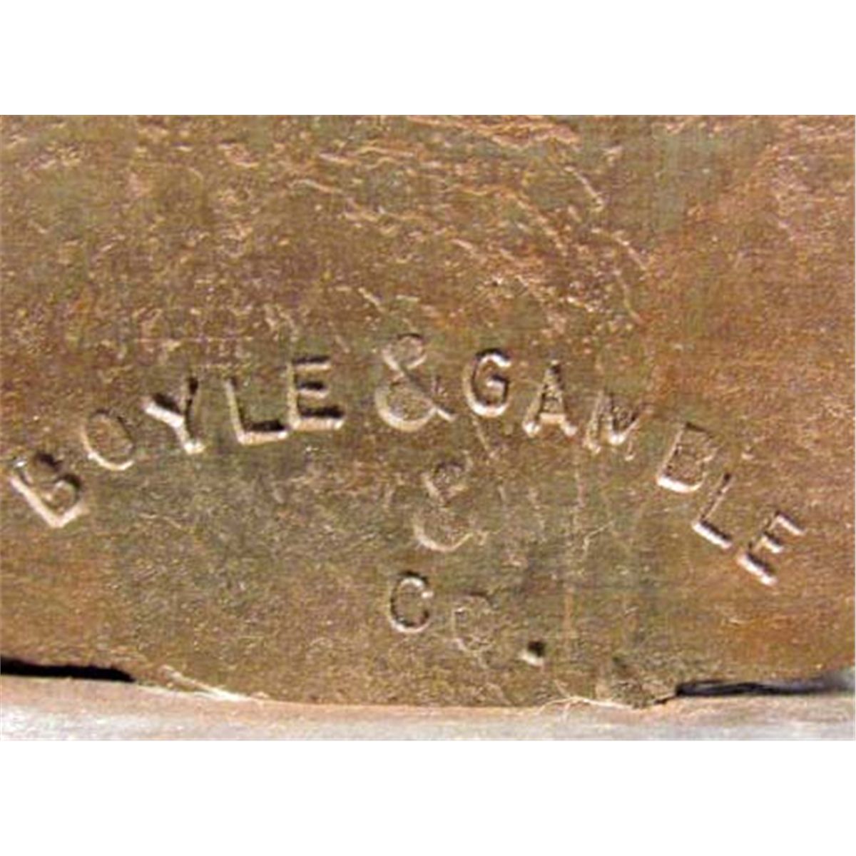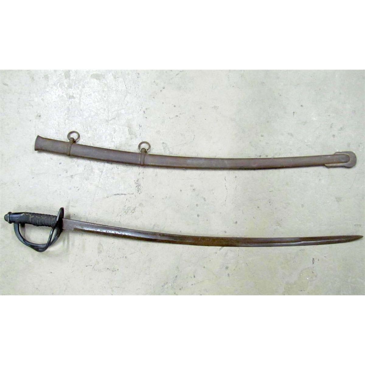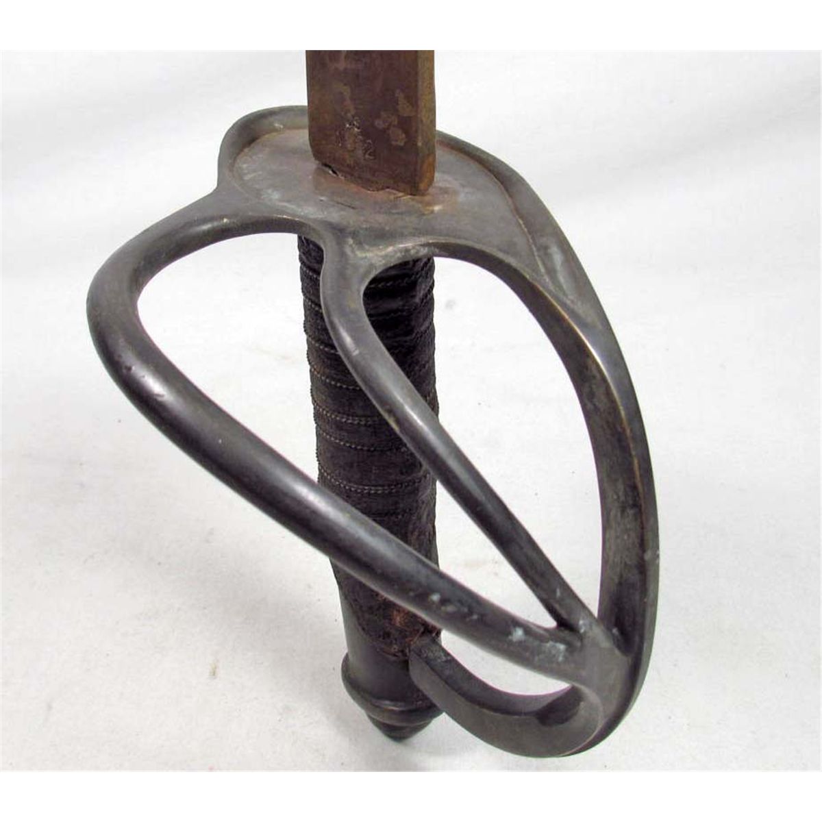 Approx. 42.75" long overall. Blade is marked Boyle & Gamble & Co CS 1862. The blade is dard and pitted. The scabbard has a rust patina. Brass cross guard w/ a leather wrapped handle which shows use and wear. For an enlisted man