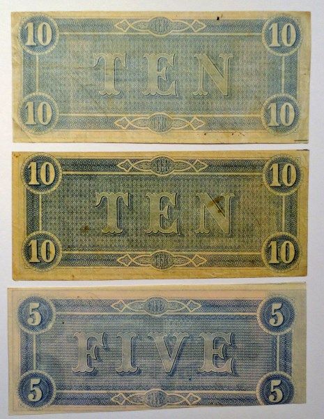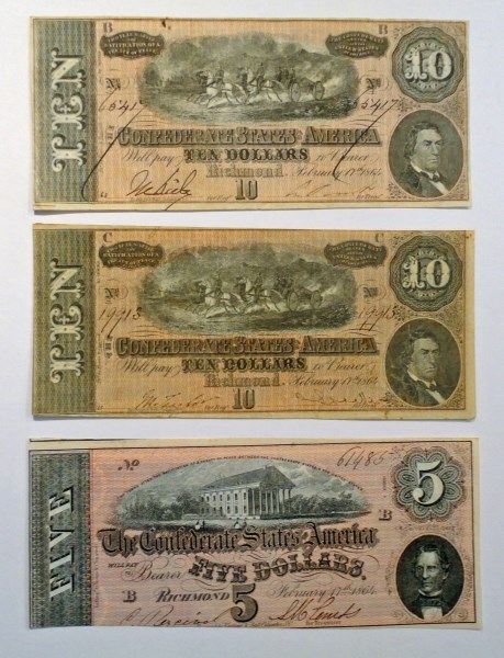 CONFEDERATE NOTES: 1864 $5.00 UNC; 2-1864 $10.00 F-VF,