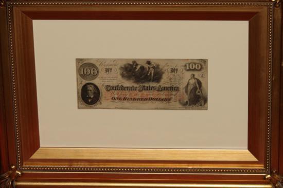 CONFEDERATE STATES OF AMERICA NOTE 1860 FRAMED GOLD GILT