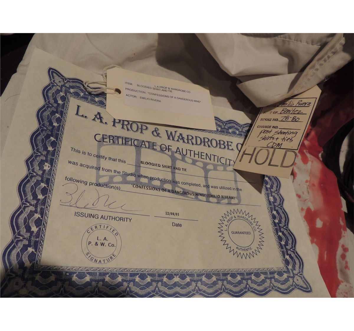 This is the bloody shirt worn by Emilio Rivera in CONFESSIONS OF A DANGEROUS MIND.