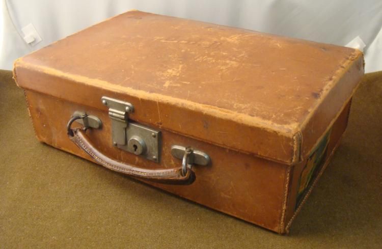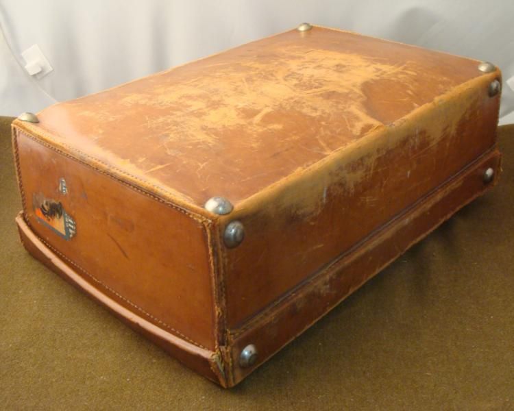 THIS IS A CONFISCATED NAZI ALL LEATHER DOCUMENT/BRIEFCASE, WITH THE INITIALS ON TOP "J.J.B." THIS IS AN INTERESTING GI OFFICER BRINGBACK. THE LEATHER DOCUMENT CASE (16X10X5" WITH ITALIAN HOTEL LABELS) WAS SURRENDERED BY A NAZI HIGH RANKING OFFICIAL. *
