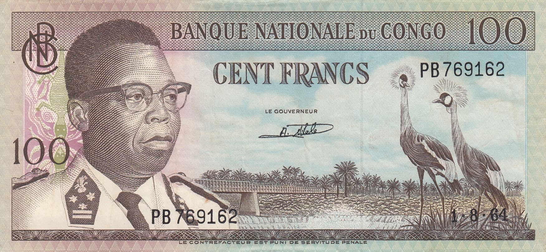 Congo Democratic Republic, 100 Francs, 1964, AUNC, p6a