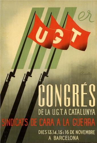 CLUSELLAS. CONGRES DE LA U.G.T. A CATALUNYA. 1937. 100x70cm. (40x27in.). Litografía. A-. Entelado.