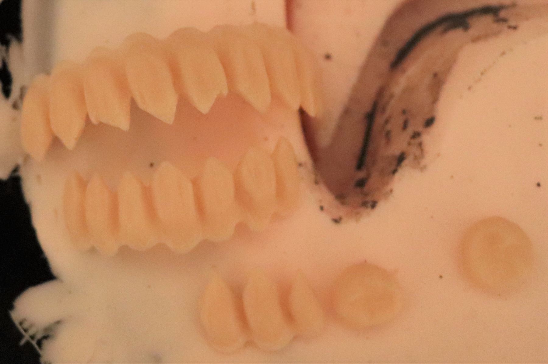 What looks like broken teeth in the one mold is simply dust.