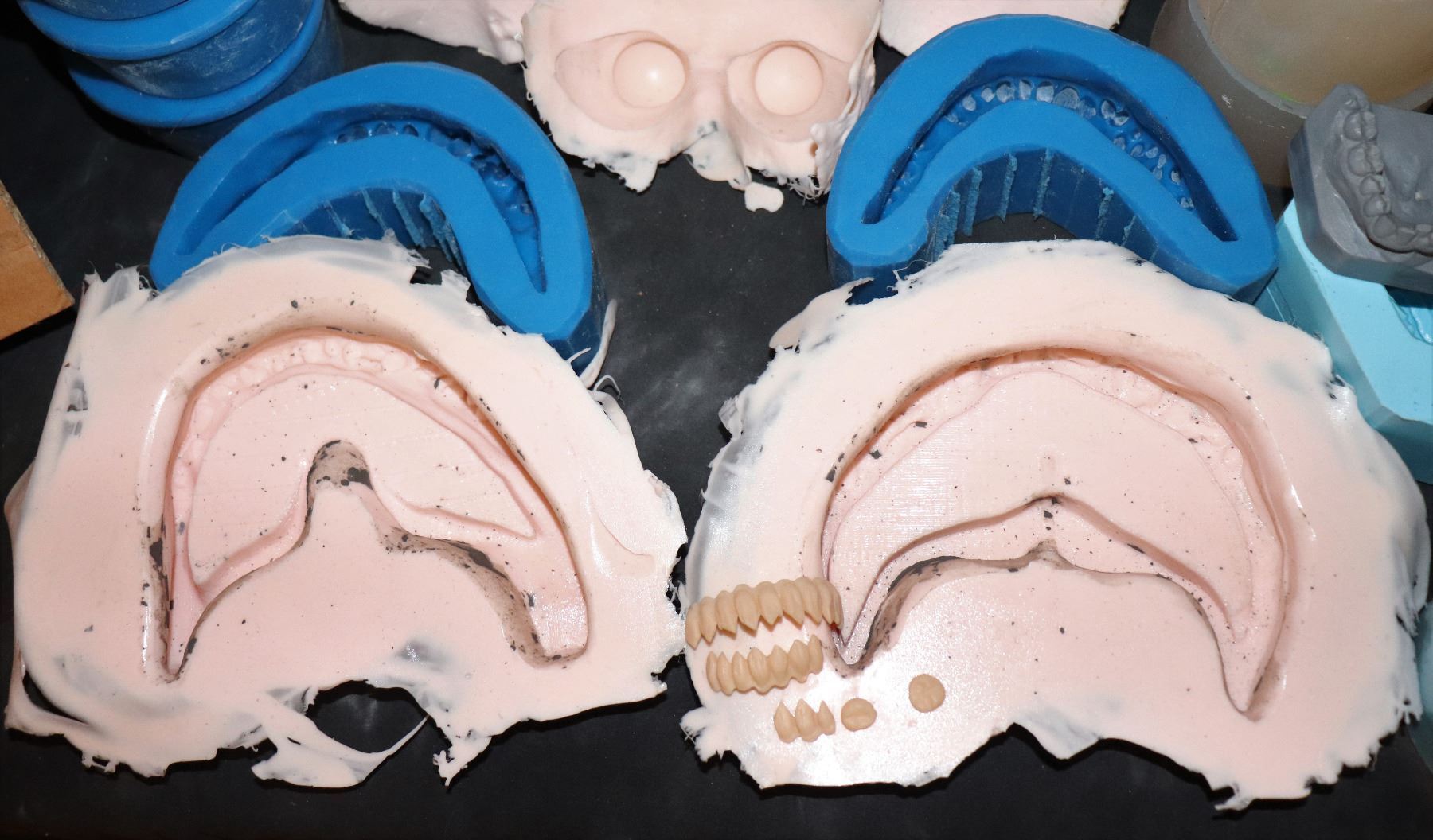 I have seen a few sad attempts at a replica mask. With these you are half way there! The resin TEETH castings are the closed mouth version and the TEETH & GUMS molds are the grinning version. Also included are R&D ears, eyes, with dental castings and molds of JAVIER BOTET!