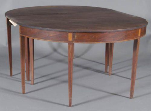 CONNECTICUT INLAID CHERRY TWO-PART DINING TABLE with two leaves, 54" diameter, 28 1/2" high, estimate 8,000-12,000
