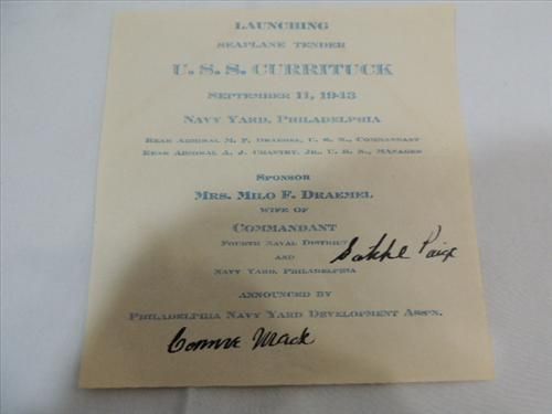 CONNIE MACK & SATCHEL PAIGE SIGNATURE AUTOGRAPH ON SHIP DOCUMENT NO COA. AS SHOWN. VIEW PICTURE FOR DETAIL.