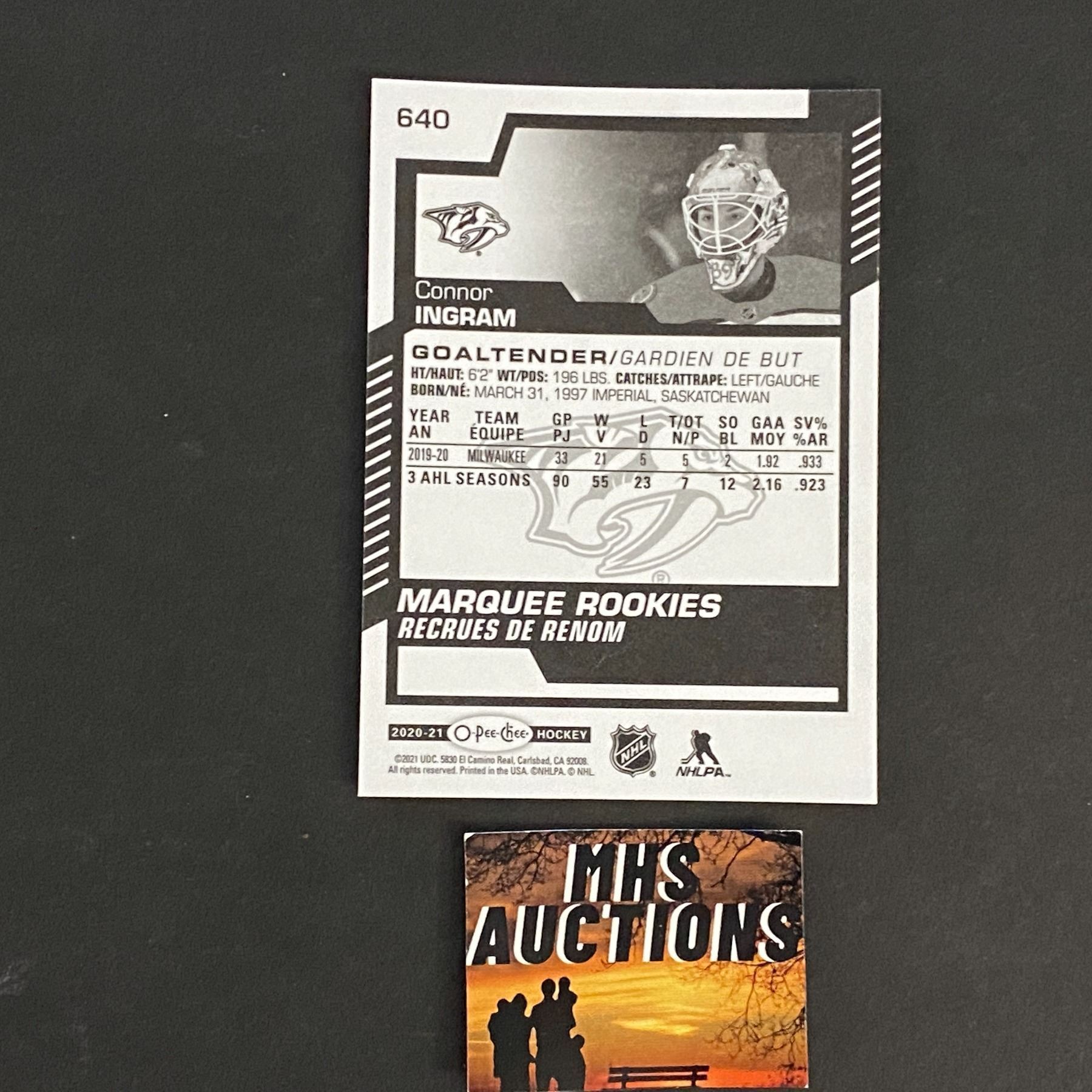 CONNOR INGRAM 2020-21 O PEE CHEE MARQUEE ROOKIE HOCKEY CARD