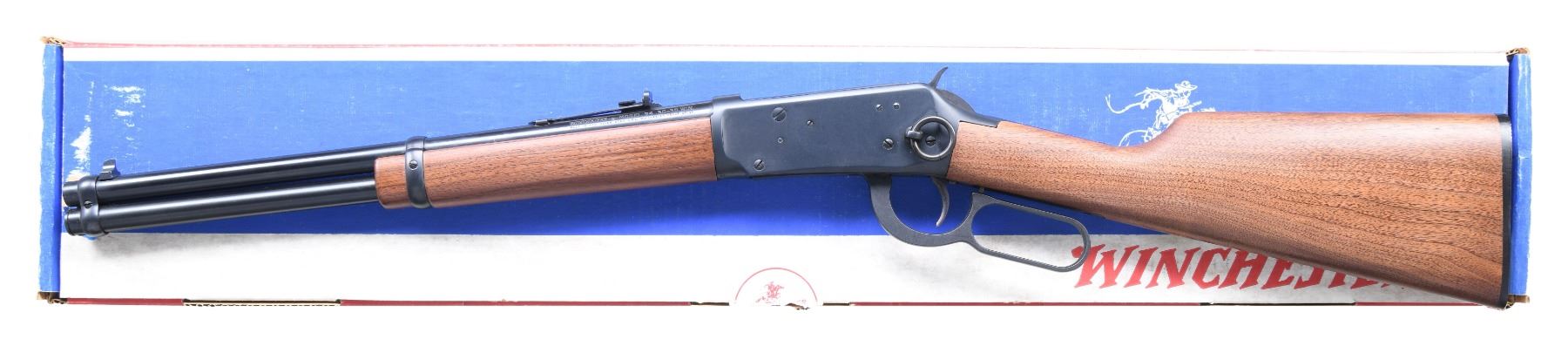 LEVER ACTION CARBINES. Please note as of 4/28/25 this item description has been updated. Please revisit this description and contact us with any questions. Cal .30-30. Bbls. 16" w/ sporting sights. Full length mags. Actions have saddle rings on left sides. 7 3/4" trapper length forearms. Straight grip walnut stocks w/ plastic buttplates. UNATTACHED ACCESSORIES: both have their original red, white & blue cardboard shipping boxes containing instructions, hang tags, purchase record cards, service center lists & hunter's pocket guides. CONDITIONS: near new, retaining virtually all wood & metal finishes. Bright near excellent bores. GUN 1: S# 4935020. (25-613/DS). GUN 2: S# 4935019. (25-614/DS). $1,400-1,900.