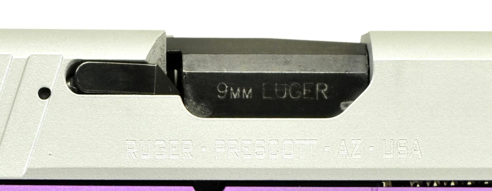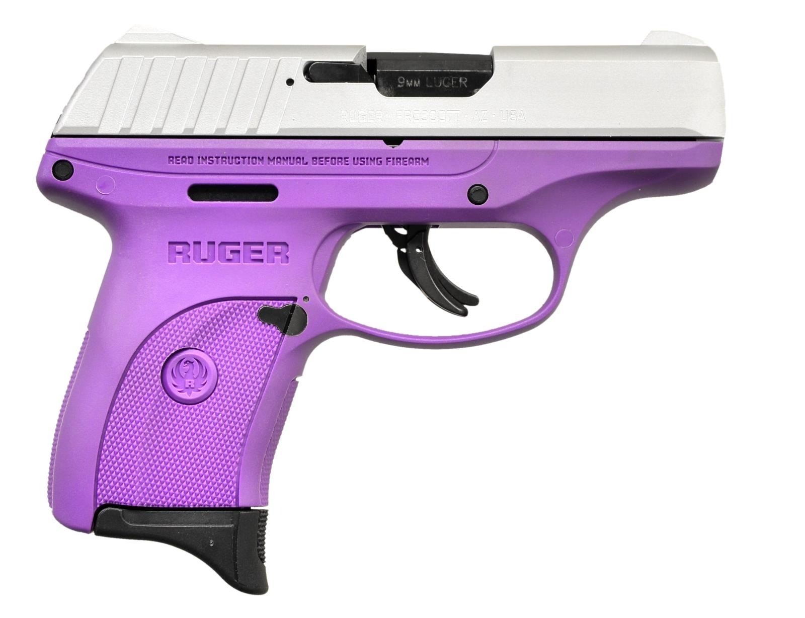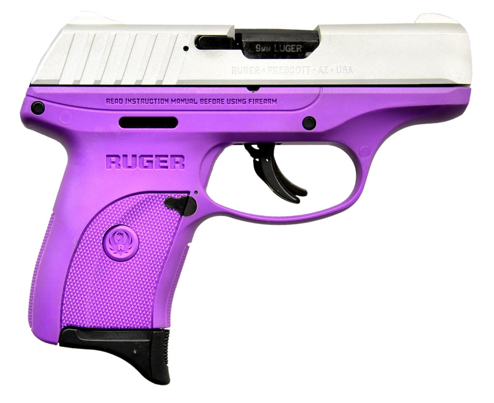 EC9s SEMI-AUTO PISTOLS. BOTH: Cal. 9mm Luger. S# 462-61127, S# 462-61128. Bbls. 3.12" with black oxide finishes. Mfg. 2023 (2018 to date) as Models 03295 with Purple polymer checkered frames and aluminum Cerakoted slides; integral sights having grooved faces to rear. Striker fired with multiple safeties: trigger blade, manual and magazine disconnect. MAGS: 2 TOTAL: 1 factory 7 rds. for each. UNATTACHED ACCESSORIES: matching numbered factory box with packaging for each. CONDITION: all aspects of both near excellent appearing new and unfired. (23-6124, 23-6125/NW). BOTH MODERN. $450-600.