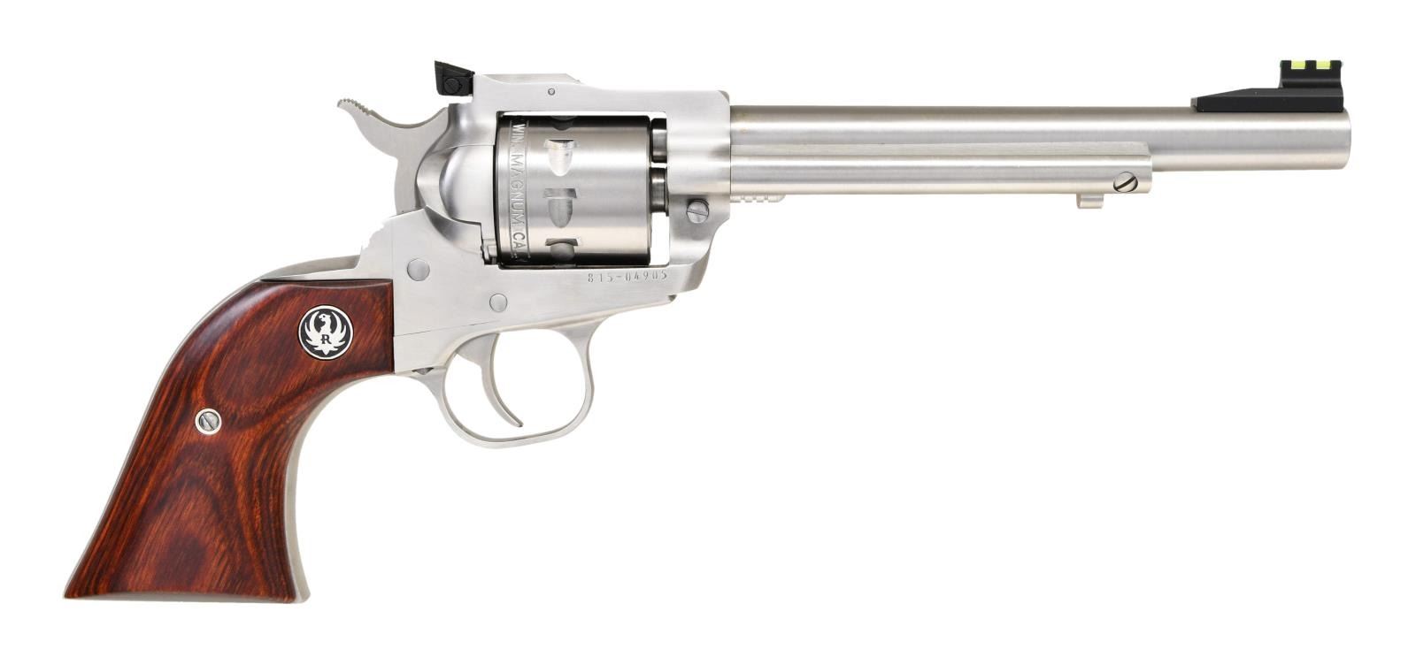 REVOLVERS. Both Cal. 22 Mag. S#'s 815-04905 & 815-04906. Both bbls. 6 1/2". Ramped fiber optic front sights. Adjustable rear sights. Stainless finishes. Rosewood-laminate grips with silver Ruger medallions. UNATTACHED ACCESSORIES: both guns have matching-numbered factory hardcases with manuals, trigger locks, and fired cases. CONDITION: all aspects of both guns are near new; in the box. (23-6906, 23-6907/MJC). BOTH MODERN. $1,400-2,000 for pair.