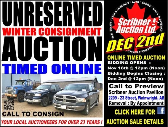 2. Online Bidders must have a valid credit card (Mastercard or Visa) to register. (If you do not have a current valid credit card, and wish to participate in the Auction, please contact Scribner Auction Ltd. office at 780-842-5666)