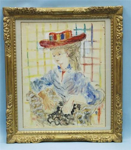 CONSTANTIN KOSTIA TERECHKOVITCH (1902-1978) French school. "Jeune Fille au Chapeau de Paille". Watercolour on paper. Signed lower right. 25" x 20". In gilt frame. Titled and dated 1969 on reverse. Ref. Benezit, vol. 8, page 256.
