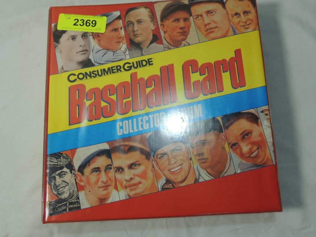 CONSUMER GUIDE BASEBALL CARD COLLECTOR ALBUM FULL OF BASEBALL CARDS ASSORTED CARDS. MIXED MAKERS AND MIXED YEARS. AS SHOWN. SEE PHOTO FOR MORE DETAILS.