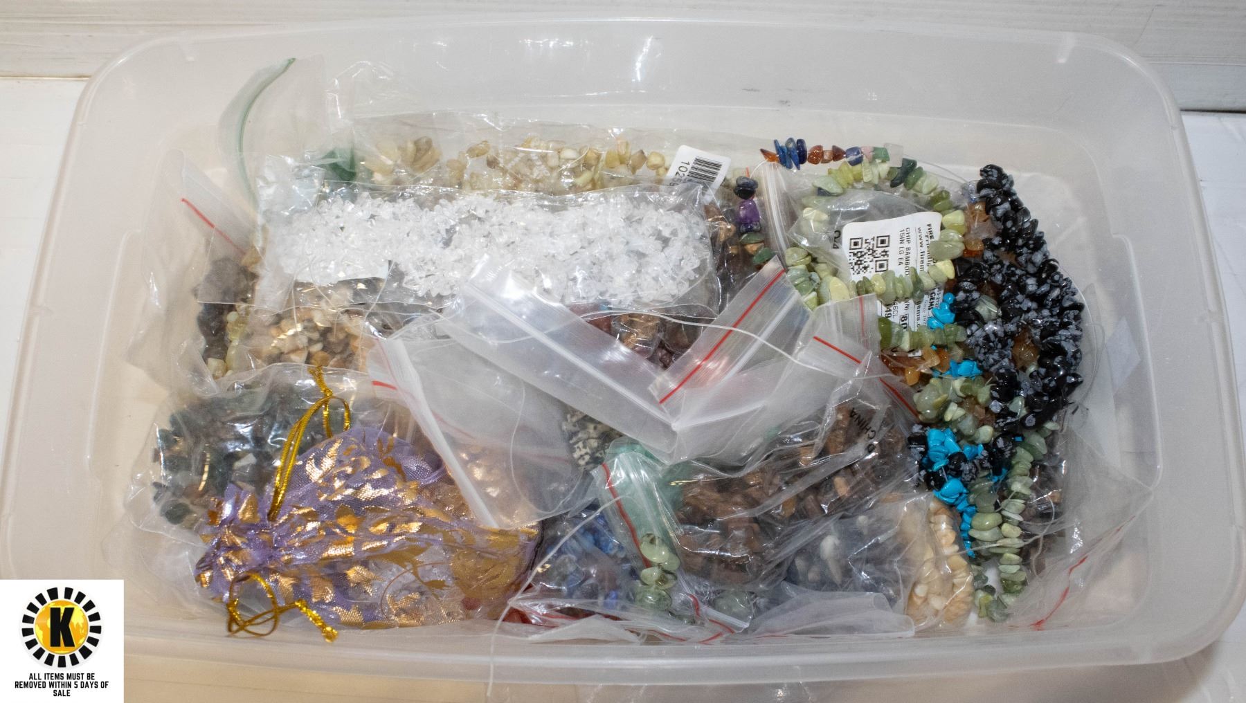 CONTAINER OF 25+ STRANDS OF MISC CHIP BEADS