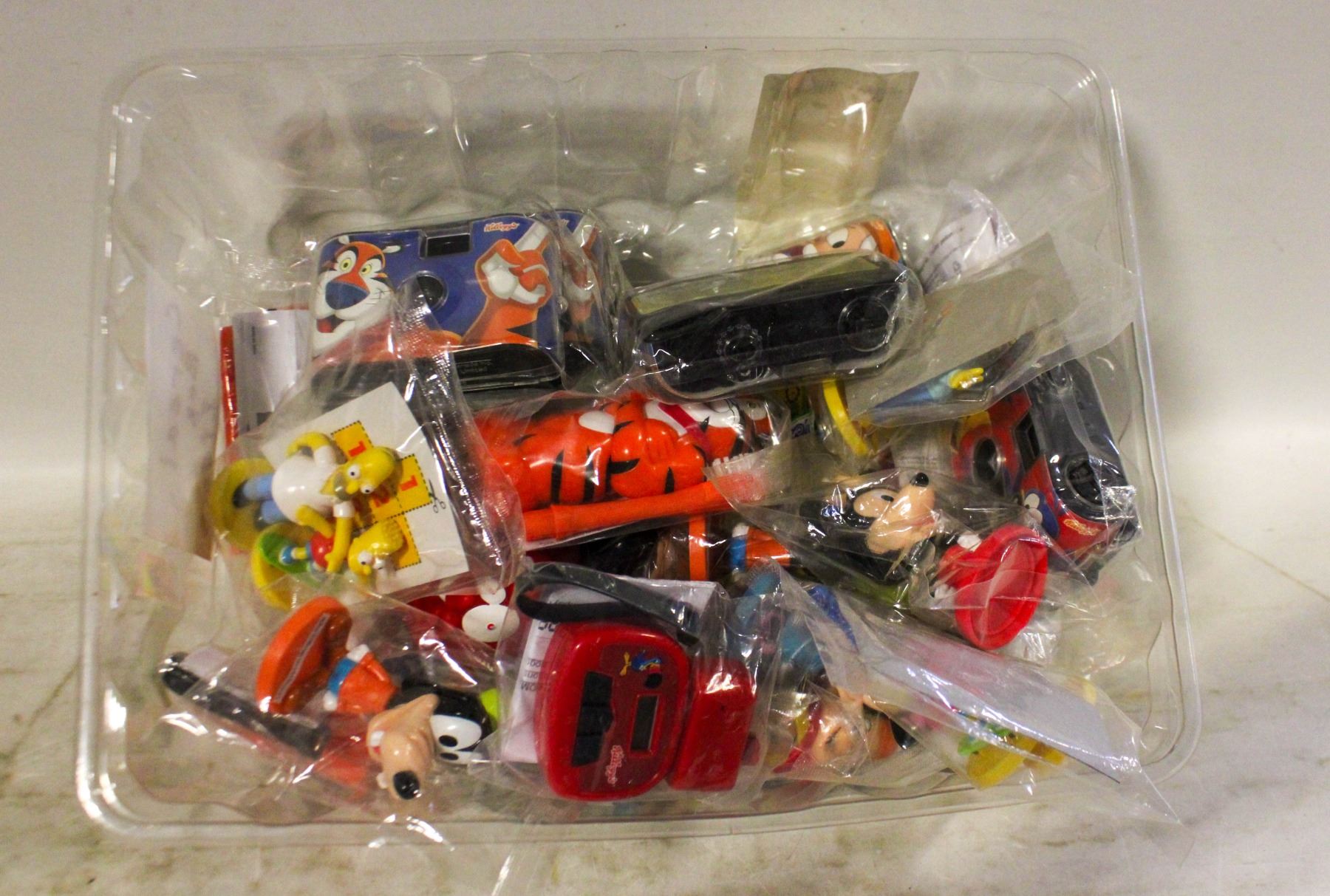 CONTAINER OF COLLECTORS CEREAL BOX PRIZES