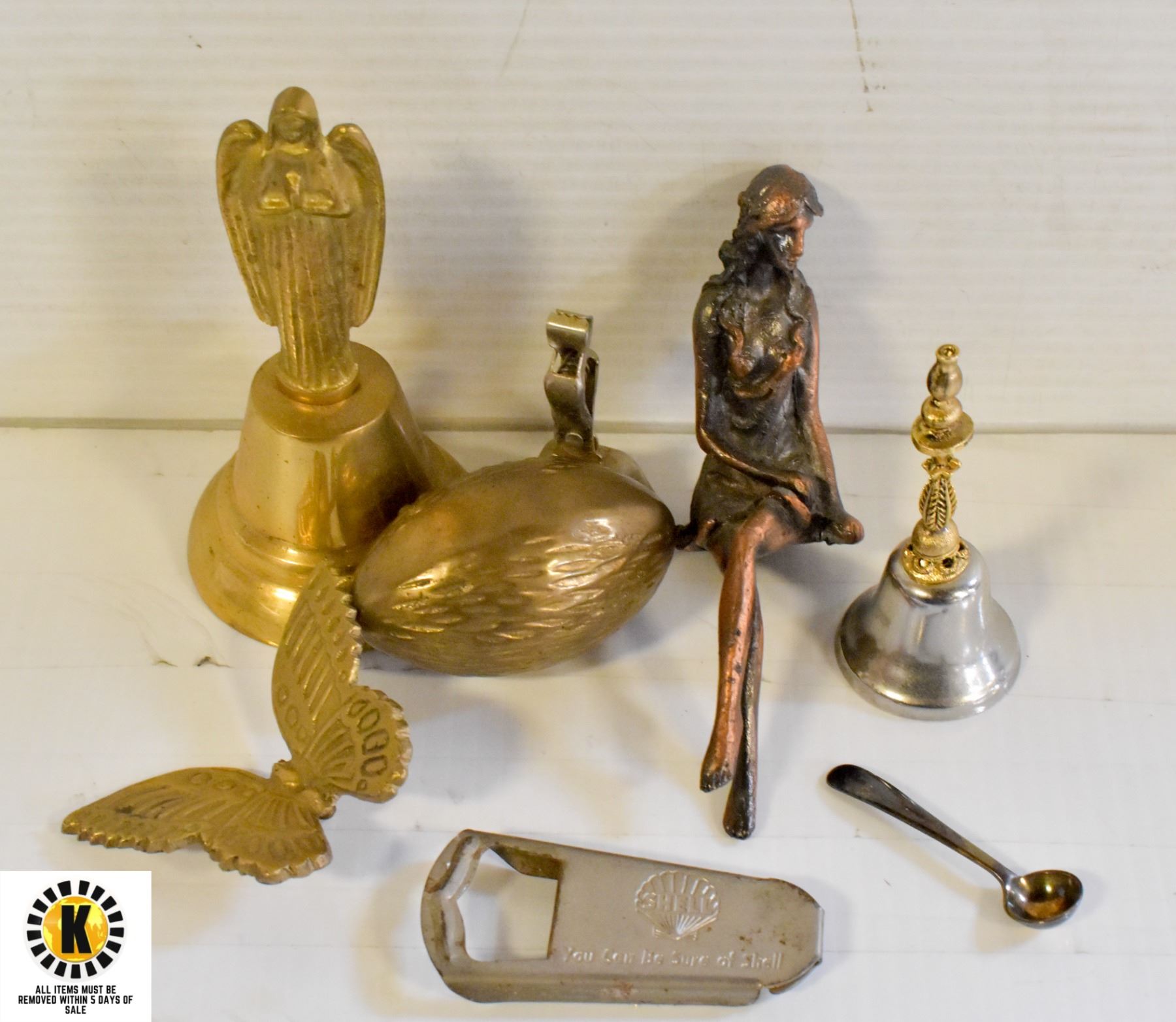 CONTAINER OF ESTATE BRASS COLLECTIBLES