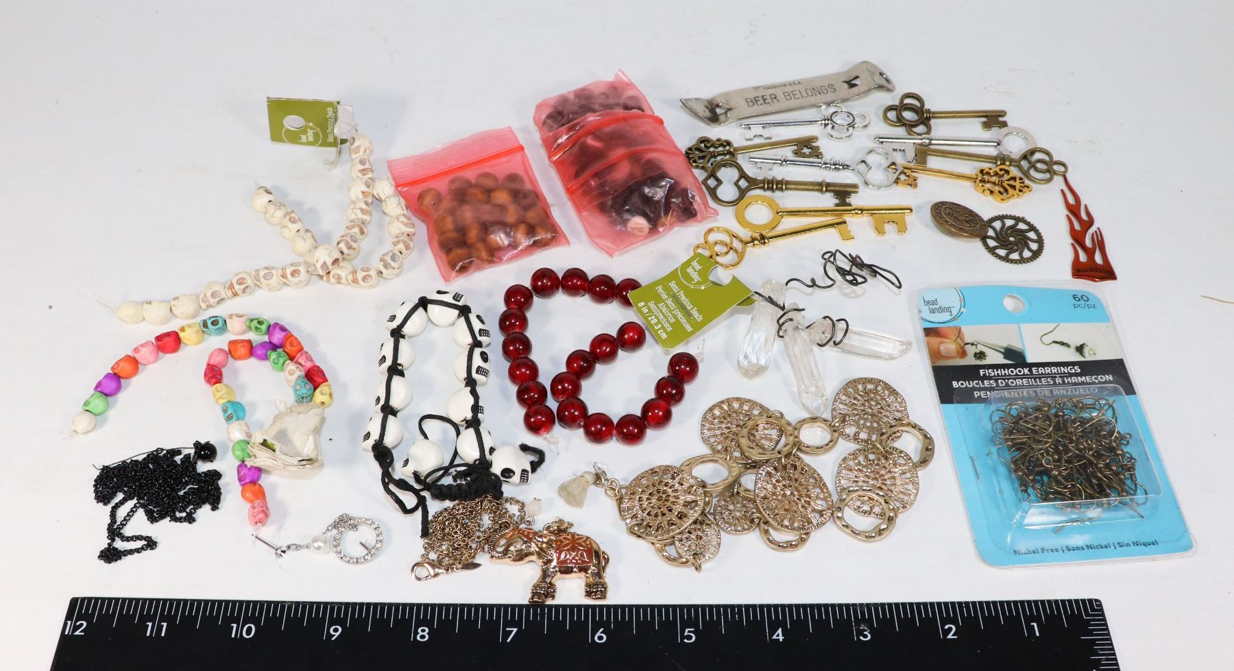 CONTAINER OF JEWELRY MAKING SUPPLIES, SOME