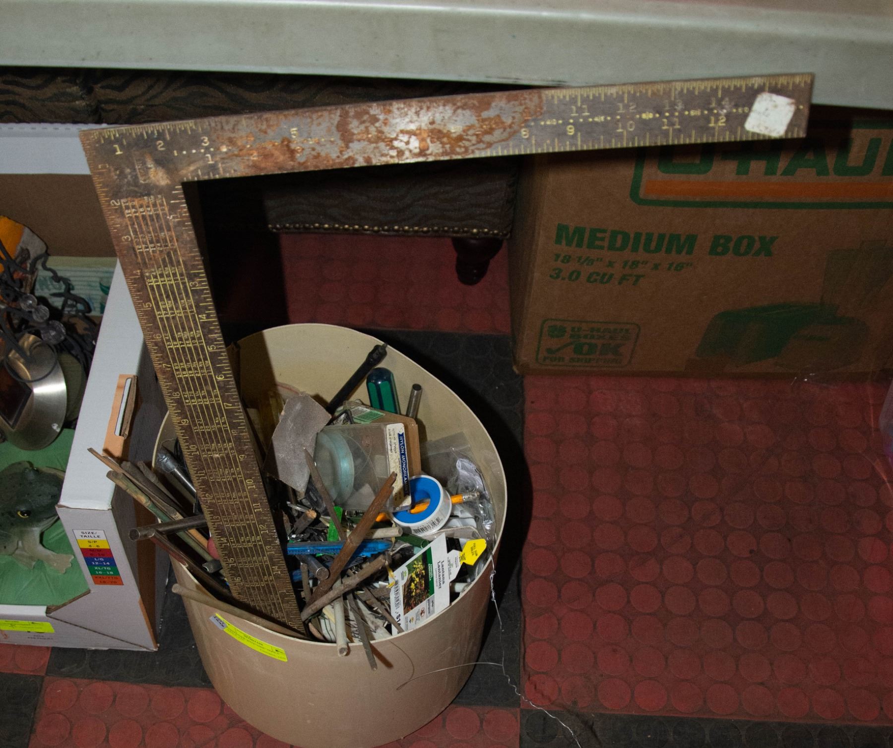 CONTAINER WITH MISC TOOLS, NAILS, ETC