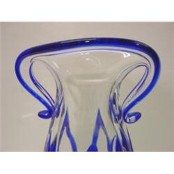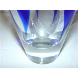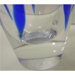 CONTEMPORARY ART GLASS VASE with applied blue decoration. Scuff mark near bottom of base. 11" H